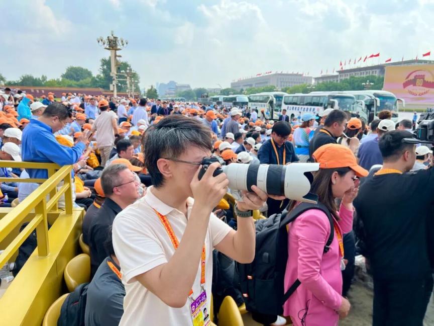 中国记协微信公众号集纳播发部分来自九三阅兵现场的记者工作照,展现一线新闻人的风采。
